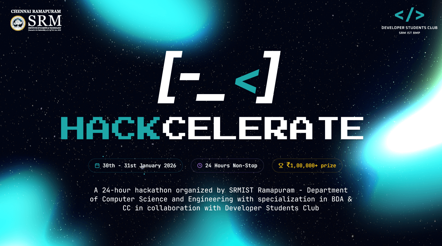 Hackcelerate’26 is an opportunity to create meaningful solutions, learn through collaboration, and bring ideas to life.